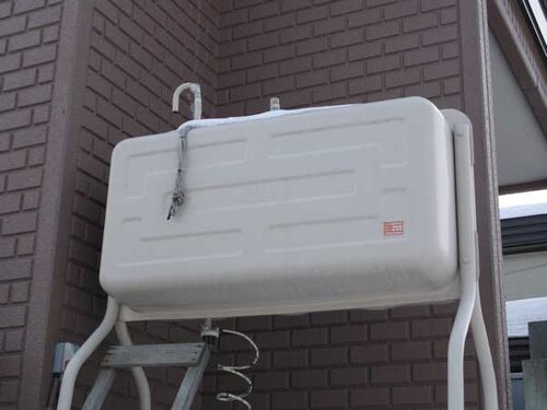 弁当箱型 北海道の多く(一説によれば9割強)の個人住宅では暖房用にいわゆる灯油ストーブが使われています。各戸には屋外に容量200リットルくらいの灯油タンクが設置されています。現在多く見かけるのは上の写真のように弁当箱を縦に置いたような直方体の…
