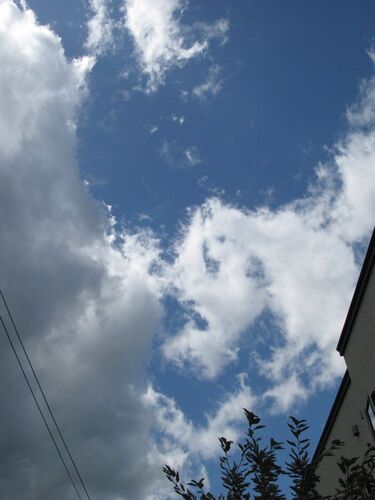 今日は朝から大気が不安定で、散歩の途中では俄雨にもあった。空模様は刻々と変化し、ダイナミックな形の雲がいくつも見られた。そのなかでも、これは一番目をひいた。これを撮った私の背後の上空には、西に傾いた太陽がまだ覗いていて、それが雲の上部を照…