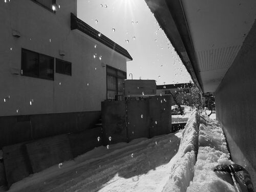 物置に通じる道 イチイ(一位, Japanese yew, Taxus cuspidata)やツツジ(躑躅, Azalea, Rhododendron)にできるツララ ペンキ屋のトタン屋根にできるツララ マサキ(柾, Japanese spindle, Euonymus japonicus) コリンゴ(小林檎, Japanese flowering cra…